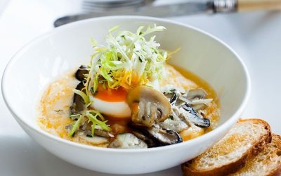 Mushroom & Frisee Salad with Parmesan Royale & Soft Boiled Egg