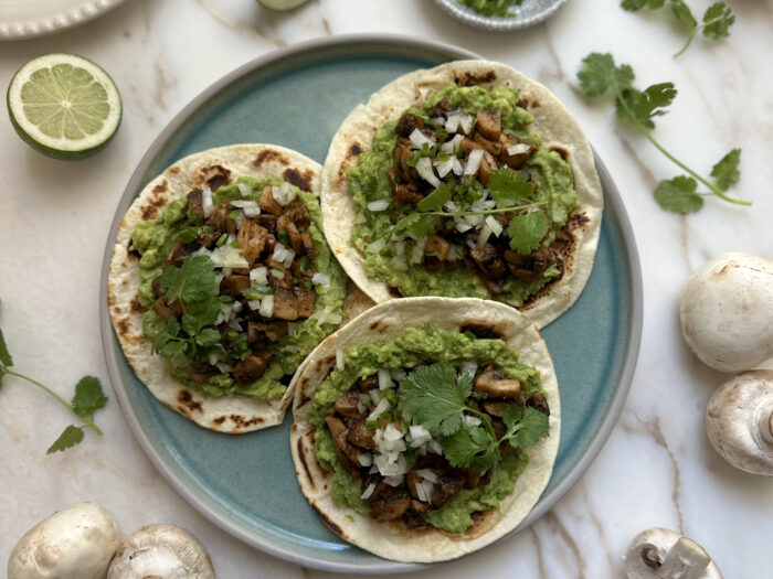 Heat the oil over a medium-high heat in a large frying pan or wok. Add in the mushrooms and cook for 1-2 minutes, or until starting to soften.